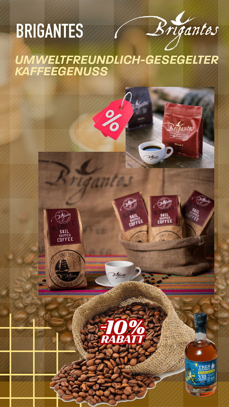 BRIGANTES steht für nachhaltigen, fair gehandelten Bio-Kaffee, der mit dem Segelschiff emissionsfrei über den Atlantik transportiert wird.