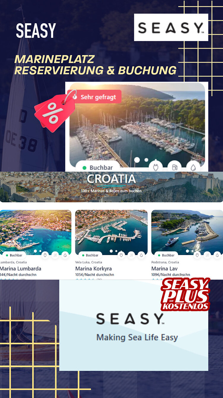 Seasy bietet dir unkomplizierten Zugang zu über 1.200 Marinas im Mittelmeer und an der Atlantikküste. Seasy.com vereint alles auf einer Plattform: Marinabuchungen, persönlicher Bootsassistent mit Google-Maps-ähnlicher Funktion und mehr!