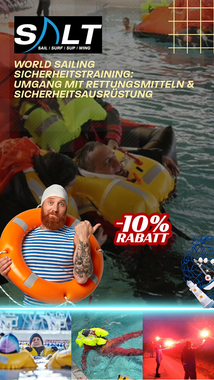 Mit dem World Sailing zertifizierten Sicherheitstraining von SALT Sailing erhältst du praxisnahe Einblicke in den richtigen Umgang mit Rettungsmitteln und Sicherheitsausrüstung. OeSV-Mitglieder profitieren von 10% Rabatt