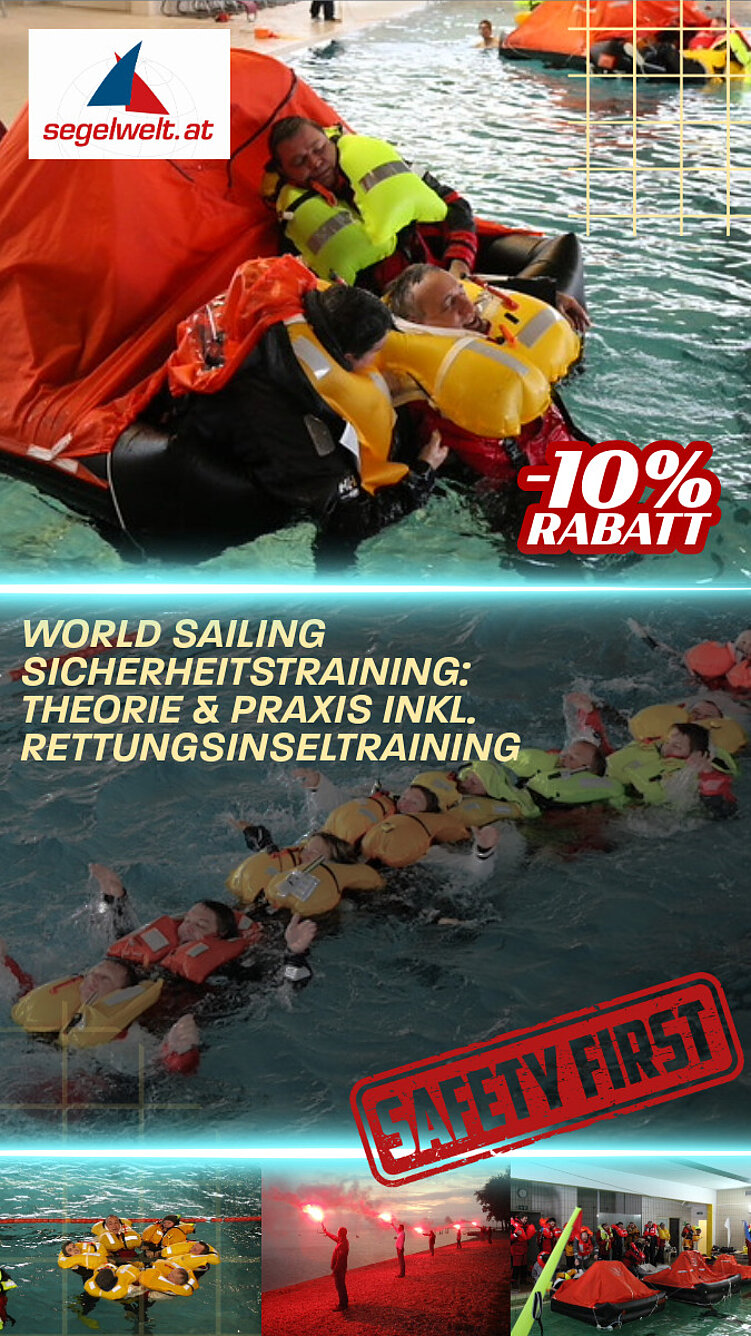 „World Sailing Approved Offshore Personal Survival Training Course“, das praxisnahes und theoretisches Wissen rund um Sicherheit an Bord vermittelt – inklusive Rettungsinsel-Training. Alle OeSV-Mitglieder profitieren von 10% Rabatt