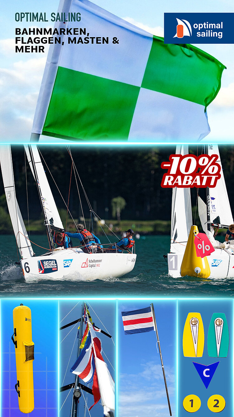 Bahnmarken, Flaggen, Regattaausrüstung gesucht? Alle österreichischen Mitgliedsvereine des OeSV profitieren von 10 % Rabatt auf Einkäufe und Bestellungen im Online-Shop von Optimal Sailing – ausgenommen Sonderanfertigungen.