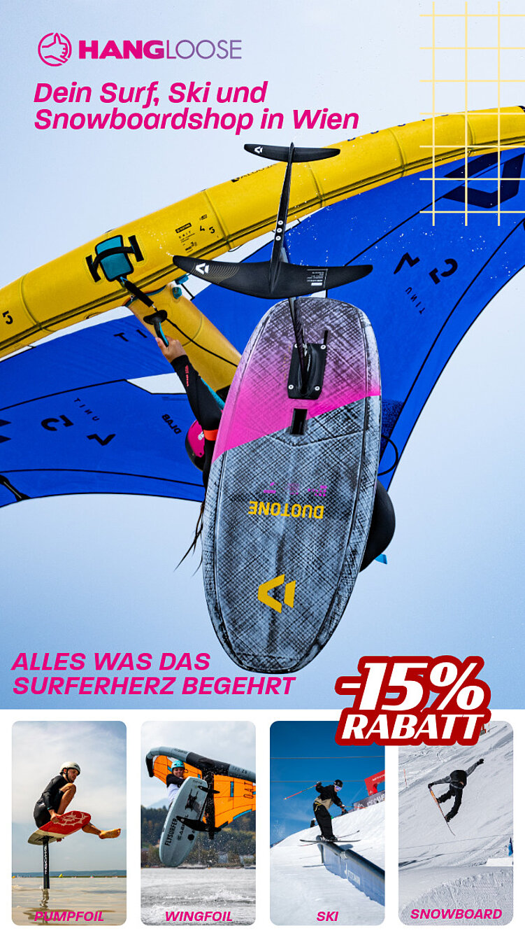 Hangloose ist seit über 20 Jahren Wiens Hotspot für Wassersport – von Kitesurfing und Windsurfen bis Wingfoilen und Wellenreiten. Dazu gibt’s eine starke Auswahl an Ski- und Snowboard-Gear – hier berät dich ein Team, das jeden dieser Sportarten selbst lebt. OeSV-Mitglieder erhalten 15 % Rabatt auf nicht reduziertes Equipment.