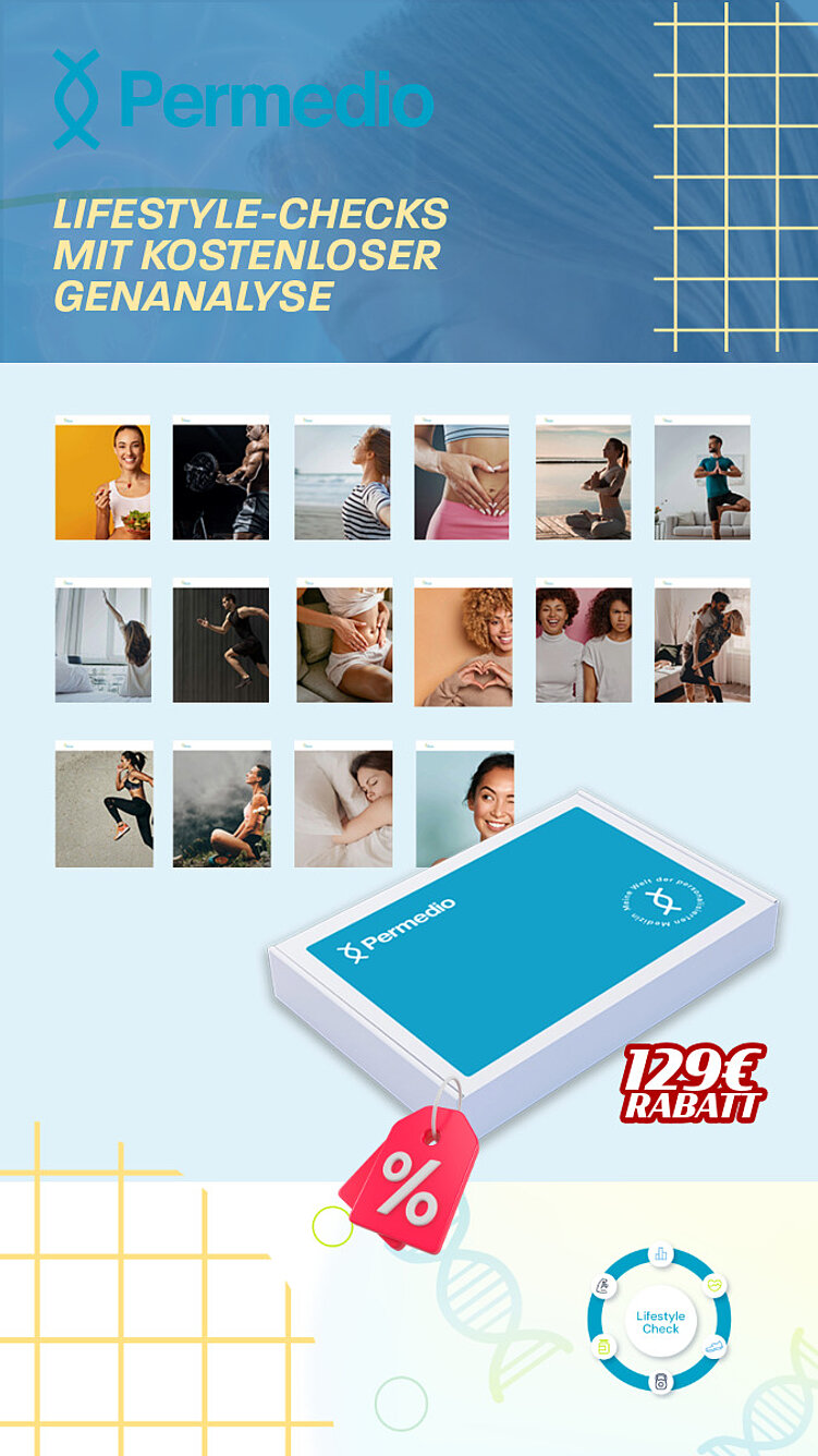 Permedio Genetik bietet moderne, wissenschaftlich fundierte Genanalysen mit individuell zugeschnittenen Empfehlungen. Der LifestyleCheck liefert präzise Einblicke in Stoffwechsel, Gesundheit, Ernährung, Fitness und mentale Balance – basierend auf Ihrer DNA und modernster Technologie. OeSV-Mitglieder erhalten beim Erwerb des LifestyleChecks einen kostenlosen zusätzlichen Gen-Report im Wert von 129€.